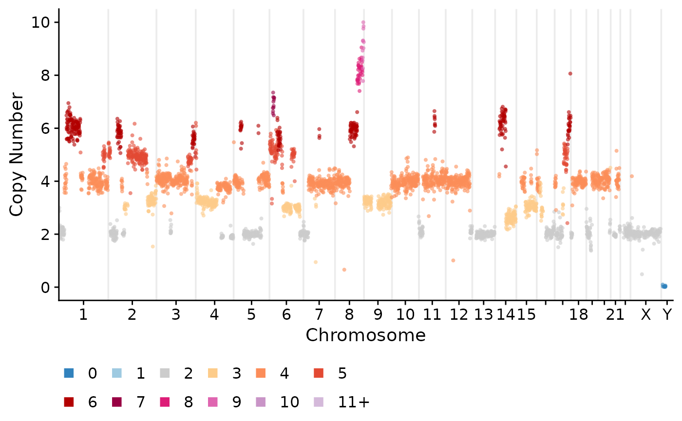 library(signals)Although this package was put together to infer allele or haplotype specific copy number in scDNAseq data, it has a lot of methods for visualization and analysis that should be useful for any type of scDNAseq data, including when you only have total copy number calls. Here we’ll go through the available plotting functions and various utilities to summarize the data.